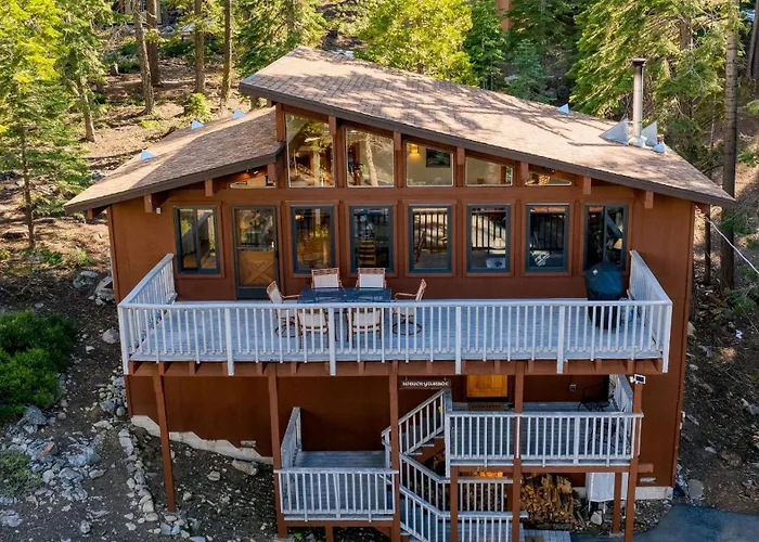ブラックウッド川から3.9kmの距離に位置するSleeps 20 2 Homes Near Ski Resort Beach Lake Access Pool Homewood Tahoma Meadowsは、山の眺めを望むテラスを提供しています。 パティオの眺めが望める別荘は、宿泊から車で10分離れたヘルマン アーマン邸へ顧客を招待します。